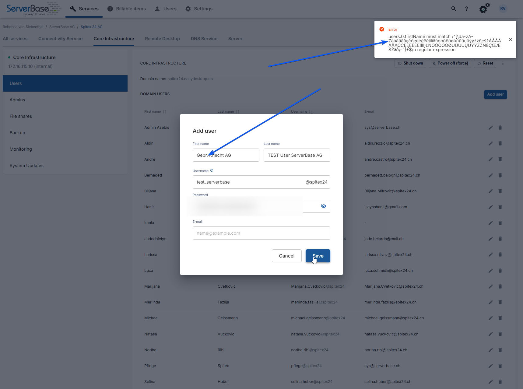 Bitte in der Fehlermeldung schreiben, dass der Punkt unerwünscht ist.