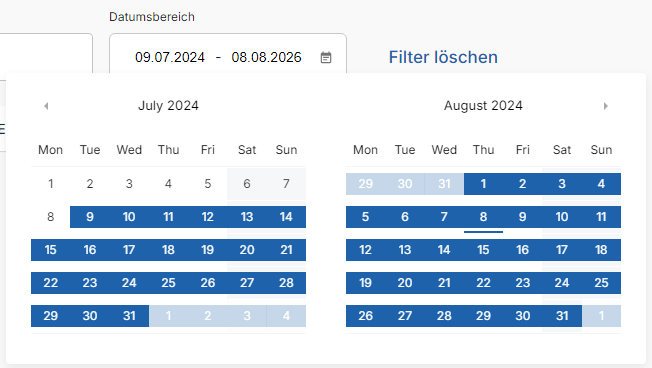 Beim Filtern von Rechnungen resp. Billable Items sollte eine Schaltfläche integriert werden, die es erlaubt, das Enddatum des Filters auf den aktuellen Tag zu setzen.